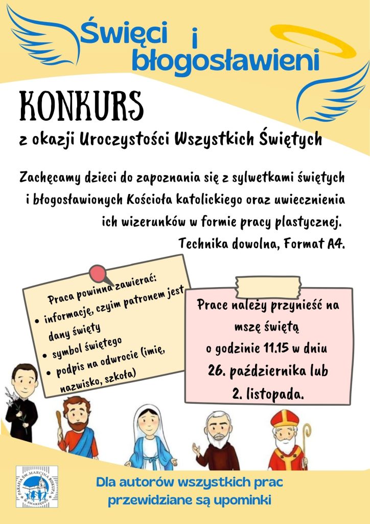 Ogłaszamy konkurs prac plastycznych z okazji uroczystości Wszystkich Świętych – „Święci i błogosławieni”.